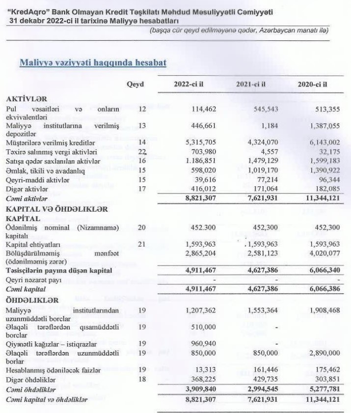 "KredAqro" Bank Olmayan Kredit Təşkilatı MMC 2022-ci ili 284 min manat xalis mənfəət ilə başa vurub. Halbuki, təşkilat 2021-ci ili 1 milyon 439 min manat xalis zərər ilə bağlamışdı.