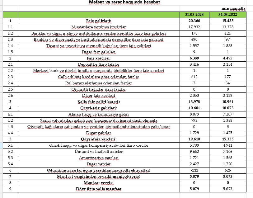 "Rabitəbank" ASC 2023-cü ilin 1-ci rübü (yanvar-mart) üzrə maliyyə göstəricilərini açıqlayıb.