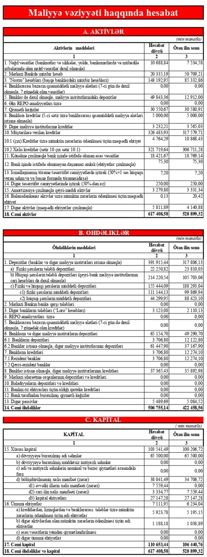 AKTİVLƏRİ 600 MİLYON MANAT SƏVİYYƏSİNİ KEÇİB