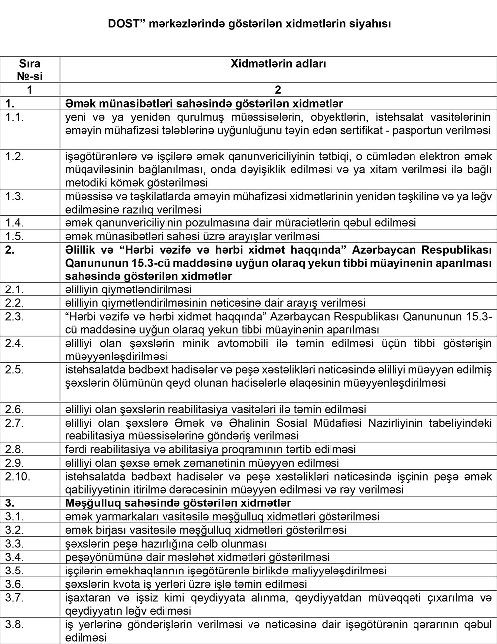 "DOST” mərkəzlərində göstərilən xidmətlərin siyahısı təsdiqləndi