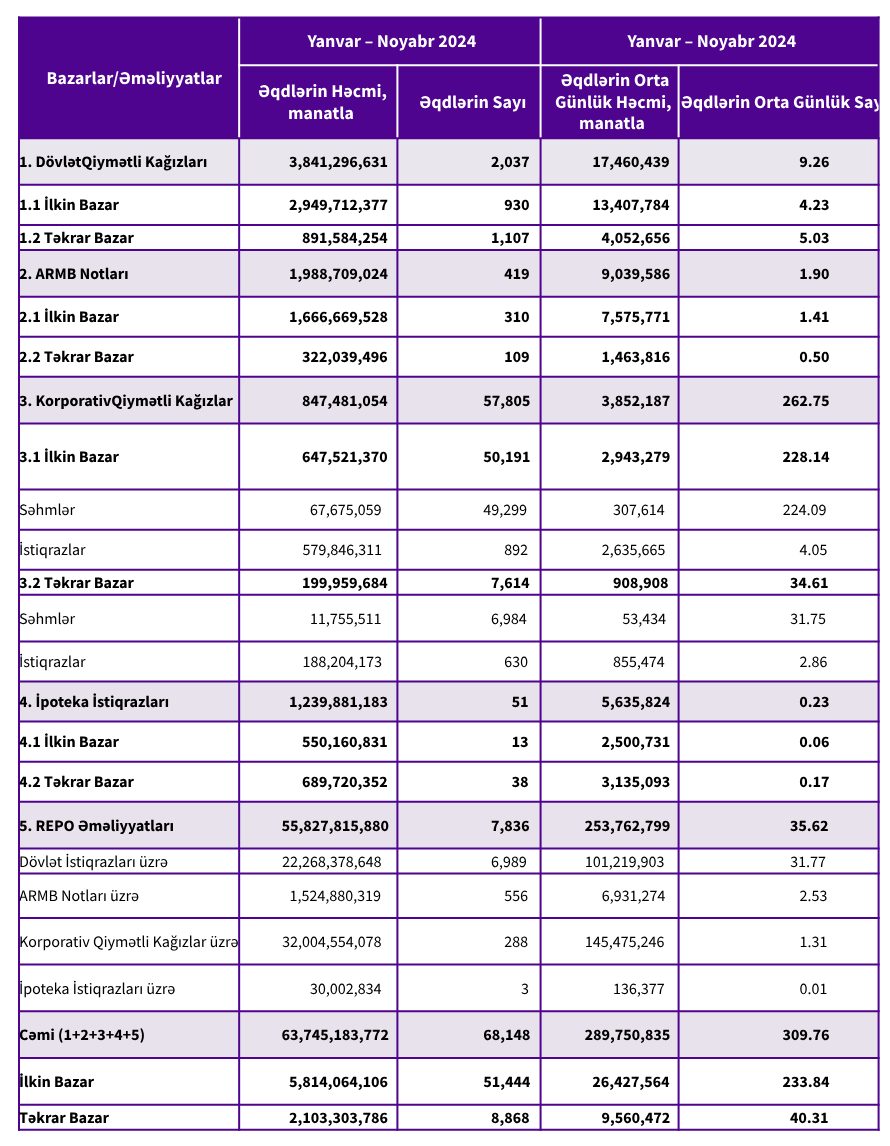 2024-cü ilin 11 ayı ərzində (yanvar-noyabr) Bakı Fond Birjasında (BFB) ticarət əməliyyatlarının cəmi həcmi 63 milyard 745 milyon 184 min manat təşkil etmişdi.