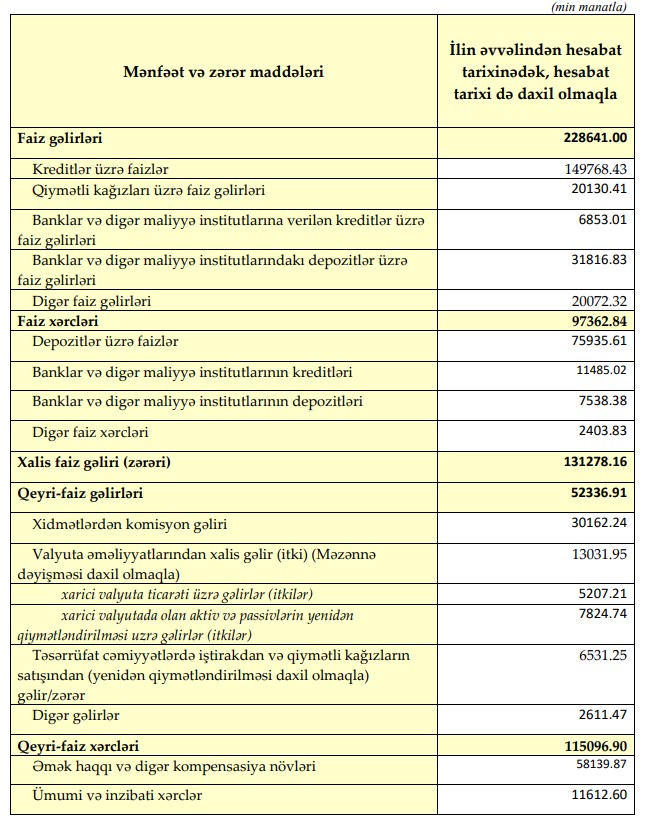Qeyri-faiz xərcləri isə 99 milyon 474 min manatdan 115 milyon 97 min manata yüksələrək 15 milyon 623 min manat və ya 15,7 faiz artım göstərib. Qeyri-faiz xərclərinin artımı əməliyyatların genişlənməsi, personal (əməkhaqqı), inzibati və digər xərclərin yüksəlməsi ilə əlaqədrdır. Artım tempinin gəlir artımından aşağı olması müsbət hesab edilsə də, ümumi xərclər yükü hələ də yüksəkdir.