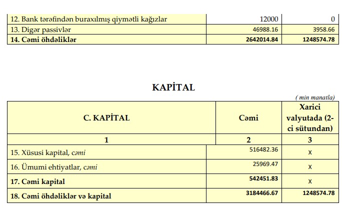 Eyni zamanda, kredit portfeli cüzi azalaraq 1 milyard 887 milyon 236 min manatdan 1 milyard 847 milyon 435 min manata enib. Azalma 39 milyon 801 min manat və ya 2,1 faiz təşkil edib. Kredit portfelinin azalması bankın daha ehtiyatlı kredit siyasəti apardığını və riskləri balanslaşdırmağa çalışdığını göstərir.