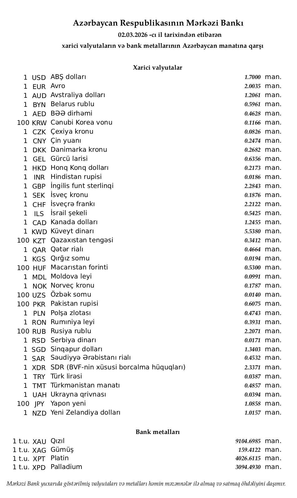 02.03.2026 tarixindən etibarən