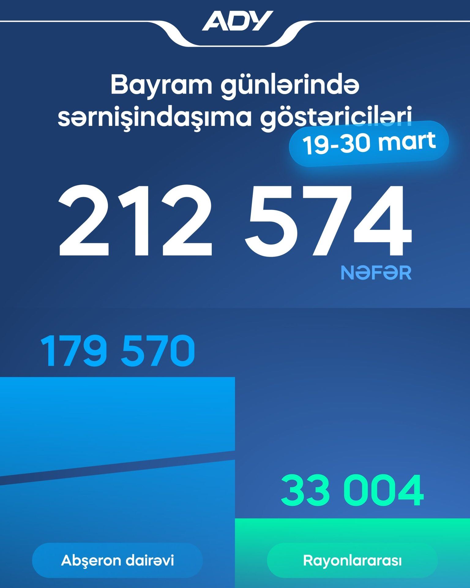 19-30 mart tarixlərində ADY 212 mindən çox sərnişin daşıyıb
