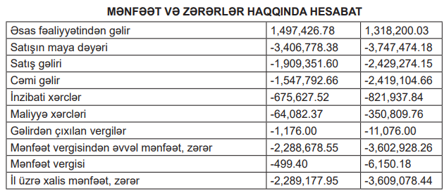 31 dekabr 2024-cü il tarixində “İD-AGROPARK” MMC-nin yığılmış zərəri 20 milyon 945 min manat təşkil edib ki, bu da Şirkətin 1009 manat olan nizamnamə kapitalından 20 min dəfəyə yaxın çoxdur.