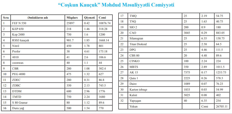 “Coşkun Kauçuk” MMC-nin əmlakları təcili satılır.