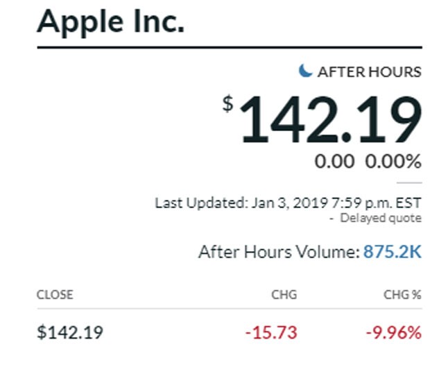 "Apple"ın bir səhminin qiyməti Nyu Yorkda 9,96%-lik böyük ucuzlaşma ilə 142,19 dollara qədər geriləyib. Beləliklə, şirkətin səhmləri son 1,5 ilin ən aşağı səviyyəsini görüb. Bu vəziyyət dünyadakı digər bazarları da sarsıtıb. Asiyadakı "Apple" tədarükçülərinin səhmlərində də böyük ucuzlaşma baş verib.