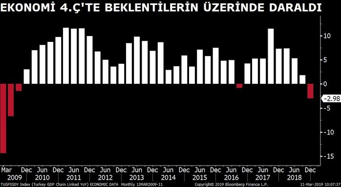 Türkiyə iqtisadiyyatı keçən ilin son rübündə 3% azalıb
