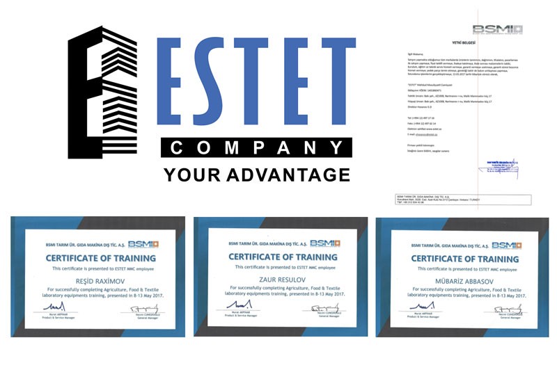 "Estet" MMC ölkə başçısı cənab İlham Əliyevin yaratdığı şəffaf iqtisadi imkanlardan istifadə edərək yeni sahələri öz fəaliyyət sferasına daxil edib. Şirkət hazırda Türkiyənin taxıl, un, yem, yağ və qida sektorundakı çoxillik təcrübəyə malik olan Norm Analitik Sistemlər şirkətinin, sənaye və tədqiqat laboratoriya cihazları üzrə ixtisaslaşmış Tales Analitik şirkətinin və kənd təsərrüfatı sektoru avadanlıqları sahəsində fəaliyyət göstərən BSMİ Dış Ticaret şirkətinin ölkəmizdəki rəsmi sertifikatlara malik olan partnyorudur.