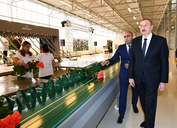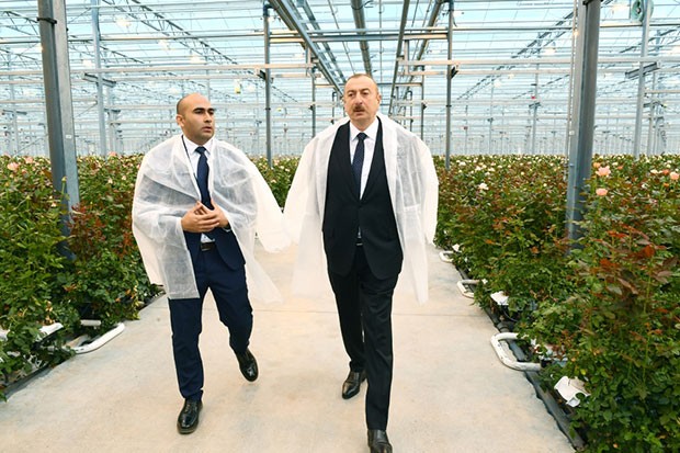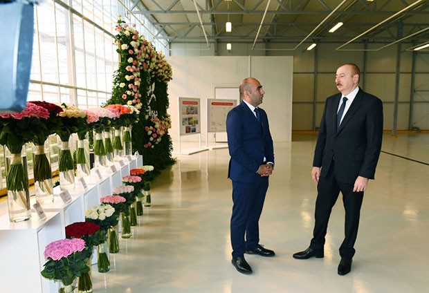 Azərbaycan Respublikasının Prezidenti İlham Əliyev oktyabrın 28-də Qəbələ rayonunun Vəndam qəsəbəsində dekorativ gülçülük istixanası ilə tanış olub.