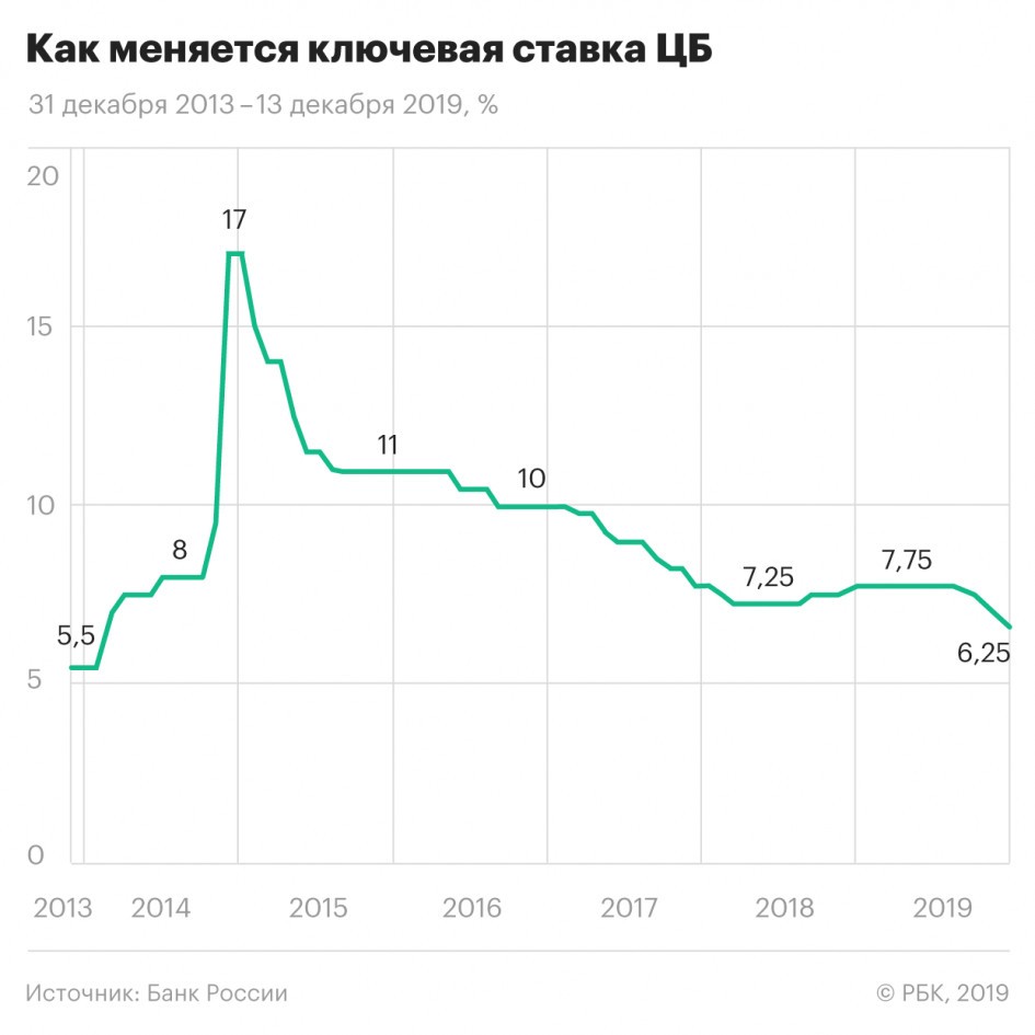 Rusiya Mərkəzi Bankı pul siyasəti faizini 0,25 bənd də aşağı salaraq 6,5%-dən 6,25%-ə endirib.