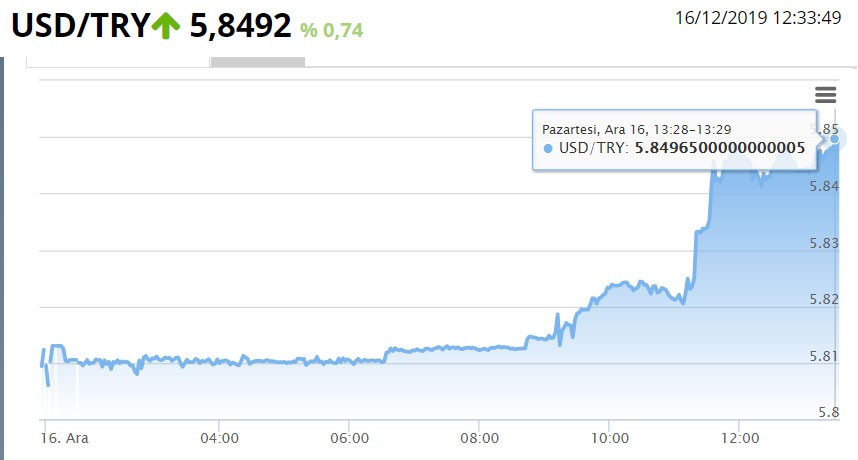 "Marja" xəbər verir ki, bu səhər ən aşağı 5.79-u görən məzənnə daha sonra yüksələrək 5.8496-ya qədər yüksəlib. Türk Lirəsi Dollar qaşısında 0,75% dəyərdən düşüb.