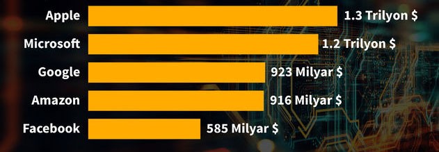 2019-cu ildə Apple, Microsoft, Alphabet (Google və Amazon şirkətlərinin dəyəri 1 trilyon dolları keçib.