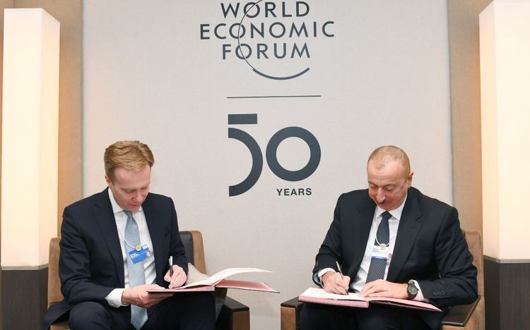 Prezident İlham Əliyev: Biz çox fəxr edirik ki, Davos Forumu ilə bu mühüm sənədi imzalayan ilk ölkələr arasındayıq. Bu, həqiqətən də bizim əlaqələrimizdə yeni səhifədir. Ümidvaram ki, gələcək keçmiş qədər uğurlu olacaq.
