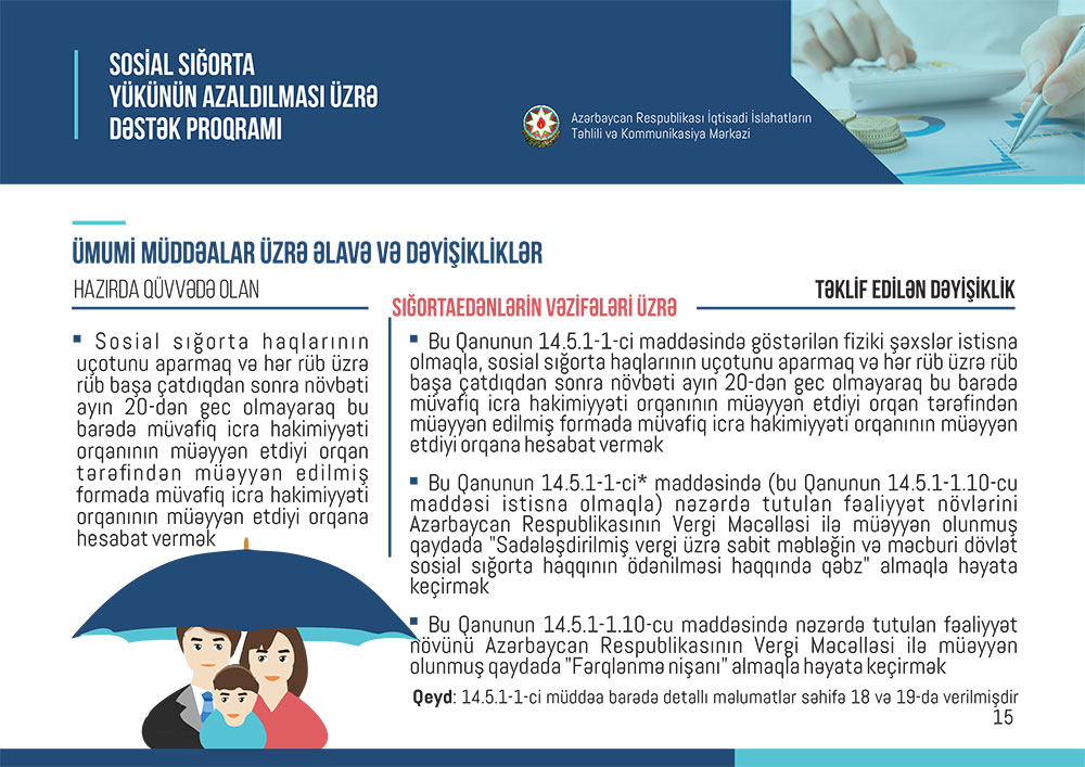Qeyd edək ki, Azərbaycan Respublikasının Vergi Məcəlləsində və Sosial sığorta haqqında Qanununda dəyişiklik edilməsi barədə layihə Milli Məclisə təqdim olunub.