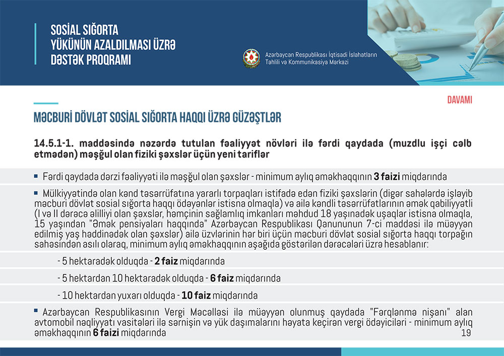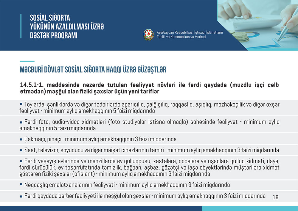 Marja “İslahat icmalı”nın vergi və sosial sığorta güzəştlərinə həsr olunmuş ayını təqdim edir.