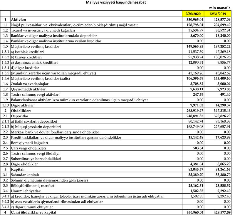 9 ay ərzində “Yapı Kredi Bank Azərbaycan”ın gəlirləri 30 milyon 724 min manat (illik müqayisədə 14,5% az), xərcləri 21 milyon 83 min manat (11,8% az), xüsusi ehtiyatlara ayırmaları 7 milyon 393 min manat (5,8% çox), mənfəət vergisi ödəmələri isə 673 min manat (46,6% az) təşkil edib.