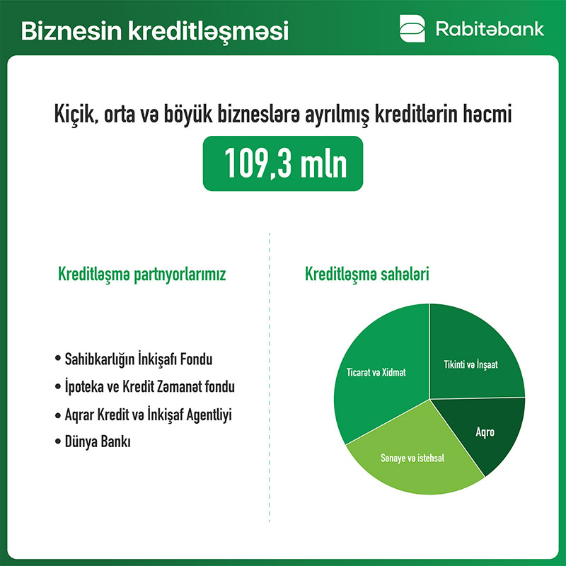 “COVID-19” pandemiyası ilə əlaqədar tətbiq olunan karantin tədbirlərinə baxmayaraq ötən il sahibkarları əlçatan biznes kreditləri imkanı ilə təmin edən bank dövr ərzində 109.3 milyon manat həcmində biznes kreditlərini müştərilərə ayırmışdır. Bununla yanaşı “Rabitəbank” ipoteka kreditləri portfelini 65% və istehlak kreditlərini isə 11% artırmışdır.