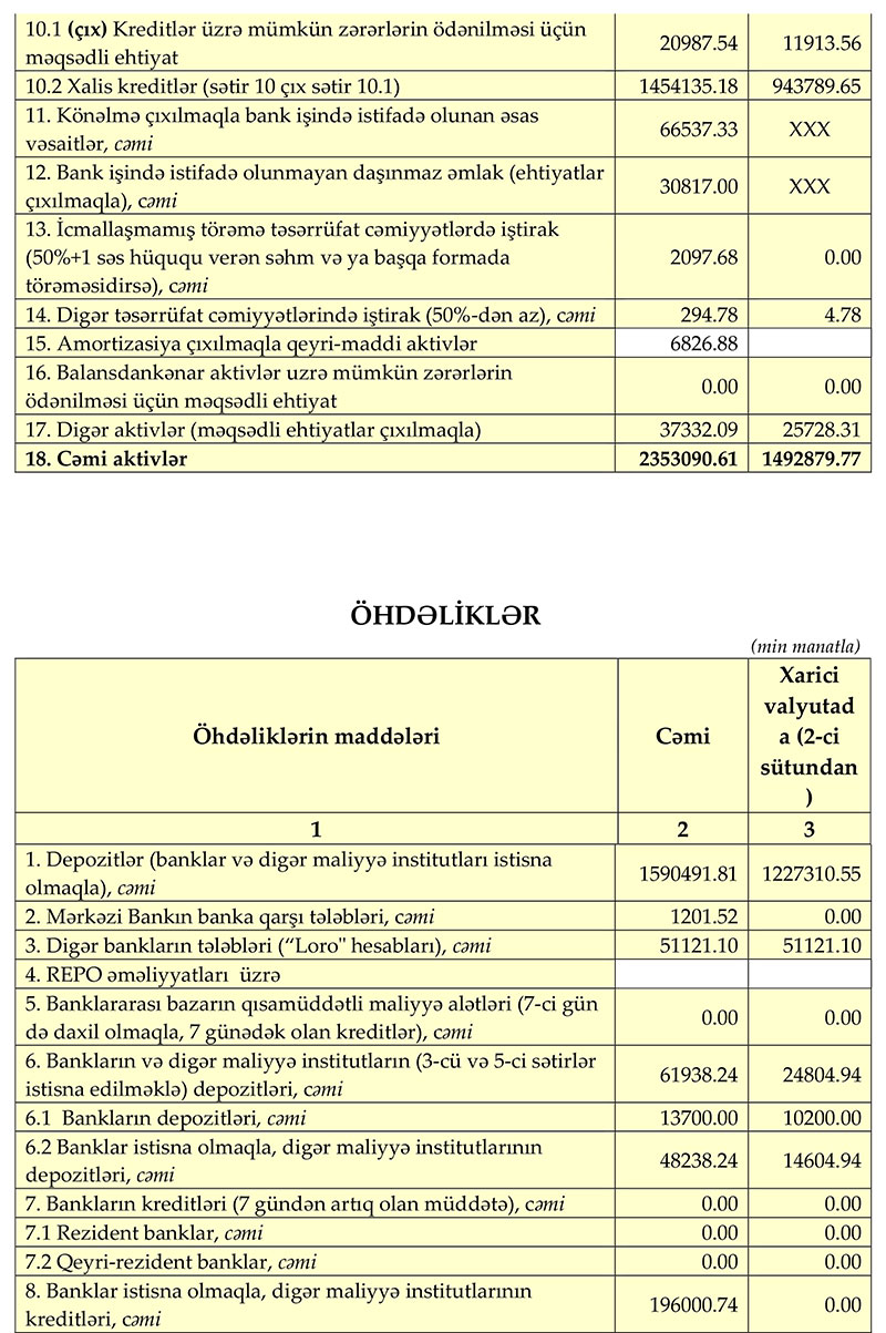 Bankın əməliyyat mənfəətinin artmasına baxmayaraq xalis mənfəətinin azalması aktivlər üzrə mümkün zərərlərin ödənilməsi üçün xüsusi ehtiyatın yaradılmasına ayırmaların 3.2 dəfə artaraq 19 milyon 638 min manat təşkil etməsilə əlaqədardır.