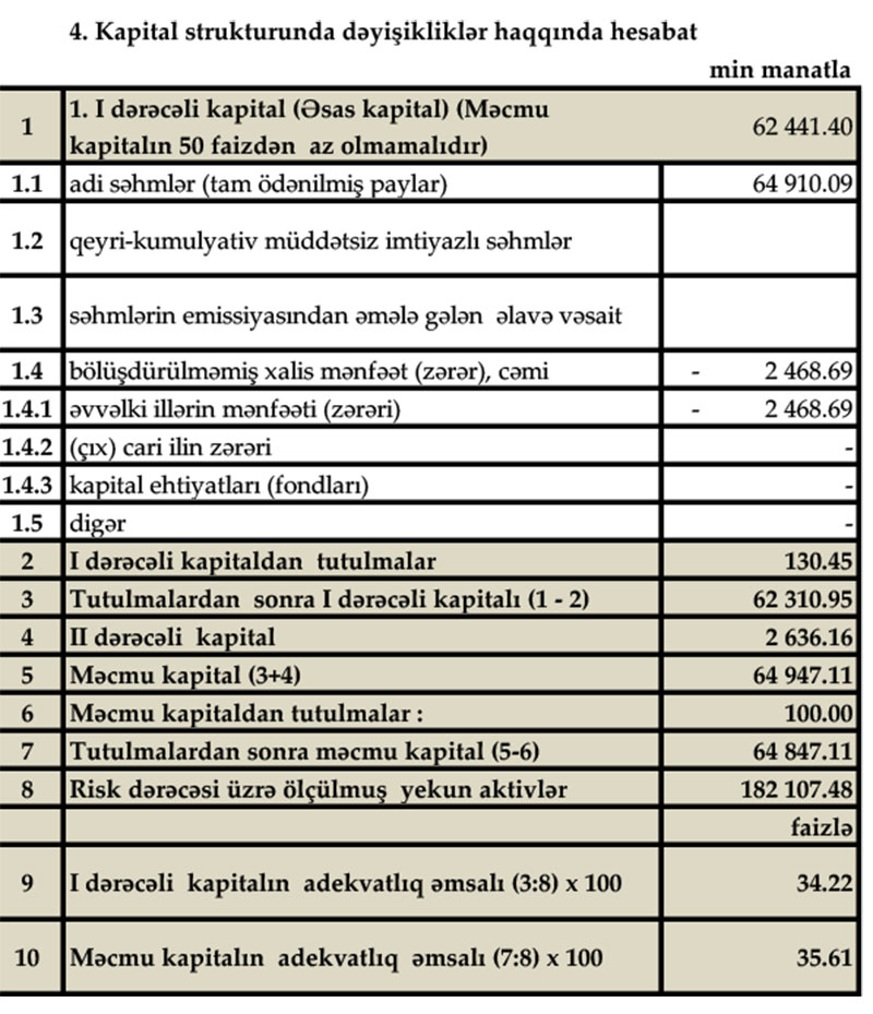 Bank 2019-cu ildə 3 milyon 342 min manat əməliyyat mənfəətindən ehtiyata 1 milyon 168 min manat ayırmışdı.