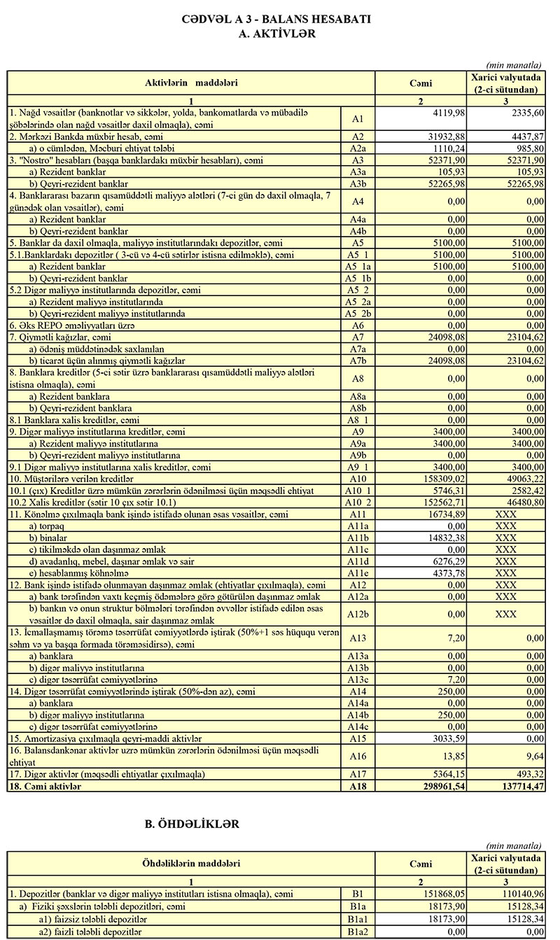 AKTİVLƏRİ 300 MİLYON MANATA YAXINLAŞIB