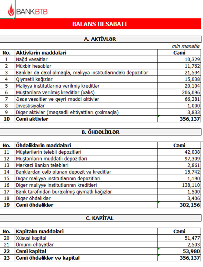 Bank “BTB” ASC 2020-ci ilin maliyyə göstəricilərini təqdim edib.
