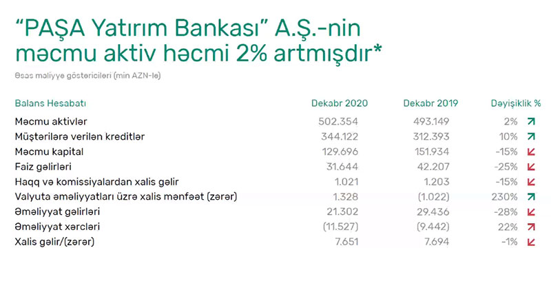 PAŞA Bankın digər törəməsi "PAŞA Bank Türkiyə" isə xalis mənfəət ilə fəaliyyət göstərib. Bank 2019-cu ili 7 milyon 694 min manat, 2020-ci ili isə 7 milyon 651 min manat xalis mənfəət ilə başa vurub.