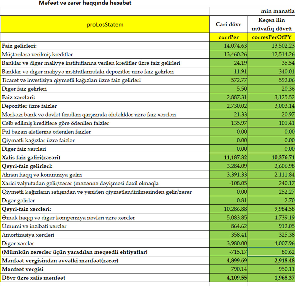 Marja xəbər verir ki, 2021-ci ilin yanvar-mart dövründə (ilk rüb) “Bank of Baku”nun cəmi əməliyyat gəlirləri 17 milyon 358 min manat (ötən ilin ilk rübündə 16 milyon 109 min manat), cəmi əməliyyat xərcləri 13 milyon 174 min manat (ötən ilin ilk rübündə 13 milyon 110 min manat ) təşkil edib. Gəlirlər xərcləri üstələdiyindən Bankın 4 milyon 184 min manat əməliyyat mənfəəti yaranıb (ötən il 2 milyon 999 min manat). Eyni zamanda, mümkün zərərlər üçün yaradılan məqsədli ehtiyatlardan azad olmuş 715 min manat mənfəətə əlavə edilib (ötən il 81 min manat ehtiyata ayrılmışdı) və mənfəət 4 milyon 899 min manata yüksəlib. “Bank of Baku” ilk rübdə 790 min manat mənfəət vergisi ödədiyindən 4 milyon 110 min manat xalis mənfəət əldə edib (ötən ilin ilk rübündə 1 milyon 968 min manat).
