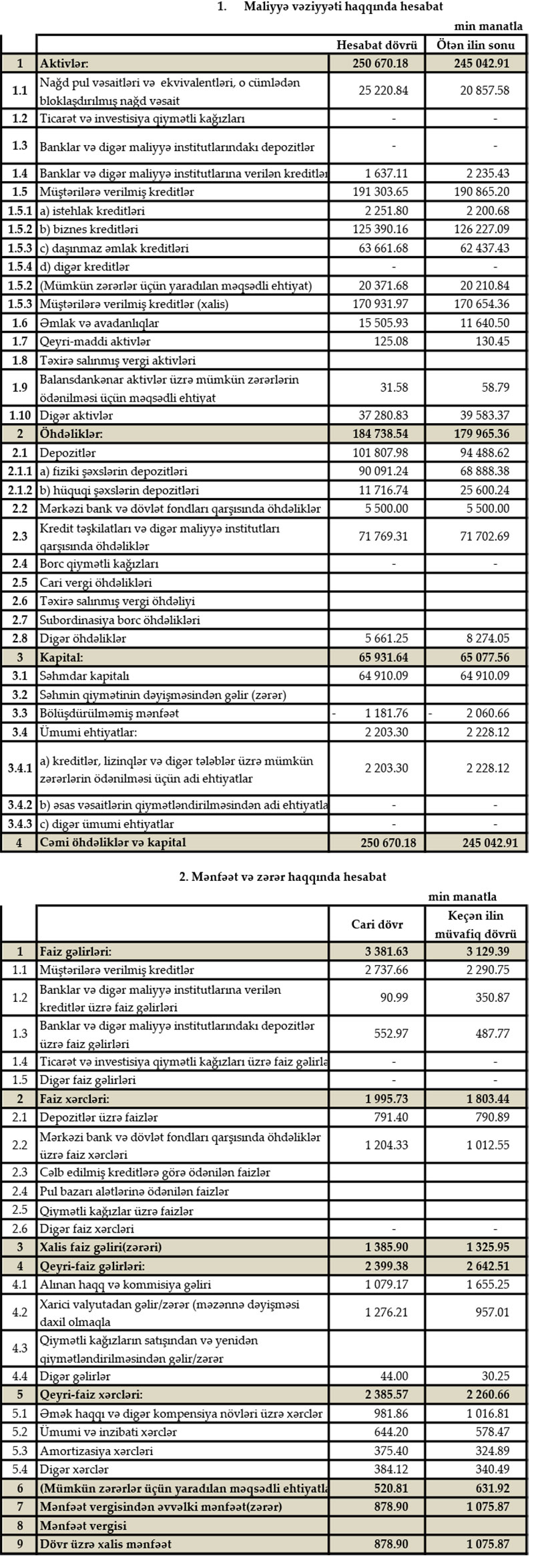 Eyni zamanda Bank cari ilin 1-ci rübünü 879 min manat mənfəətlə başa vurub.