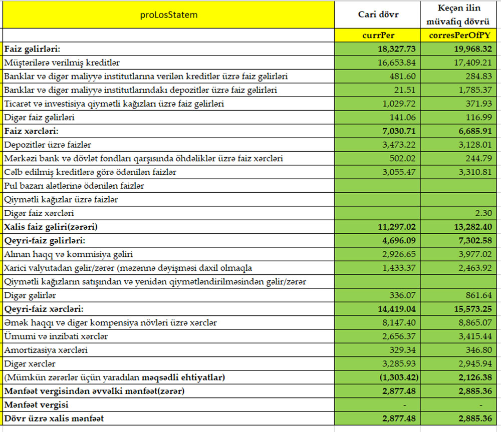 Müqayisə üçün qeyd edək ki, 2020-ci ilin ilk rübündə “Bank Respublika”nın cəmi əməliyyat gəlirləri 27 milyon 271 min manat, cəmi əməliyyat xərcləri 22 milyon 259 min manat, əməliyyat mənfəəti 5 milyon 12 min manat təşkil etmişdi. Bank əməliyyat mənfəətindən 2 milyon 126 min mümkün zərərlər üçün yaradılan məqsədli ehtiyatlara ayırdığından mənfəəti 2 milyon 885 min manata düşmüşdü.