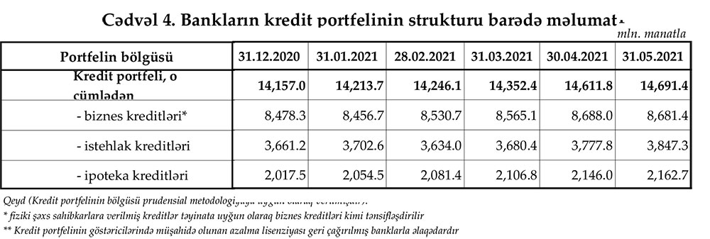 Mərkəzi Bank 31 may 2021-ci il tarixinə olan bank sektorunun əsas göstəricilərini açıqlayıb.