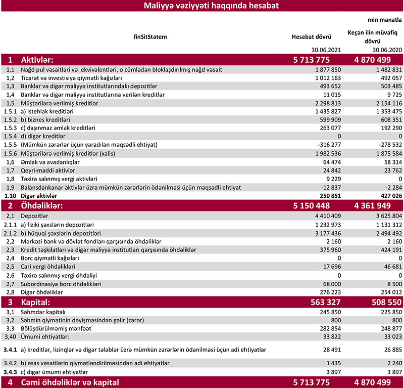 “Kapital Bank” ASC 2021-ci ilin 1-ci yarısını (yanvar-iyun dövrünü) 99 milyon 772 min manat xalis mənfəət ilə başa vurub. Bank ötən ilin eyni dövründə 170 milyon 556 min manat xalis mənfəət əldə etmişdi.