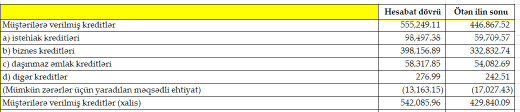2021-ci ilin ilk 6 ayında “Bank Respublika” biznes kreditləri portfeli 65 milyon 324 min manat artaraq 398 milyon 157 min manata, istehlak kreditləri portfeli 38 milyon 787 min manat artaraq 98 milyon 497 min manata, daşınmaz əmlak kreditləri portfeli 4 milyon 235 min manat artaraq 58 milyon 318 min manata yüksəlib.