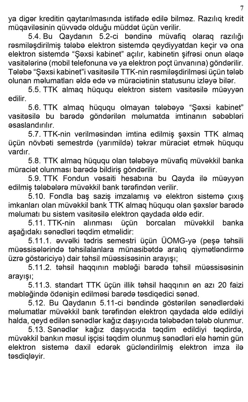- TTK Fondun vəsaiti hesabına bu Qayda ilə müəyyən edilmiş tələbələrə müvəkkil bank tərəfindən verilir.