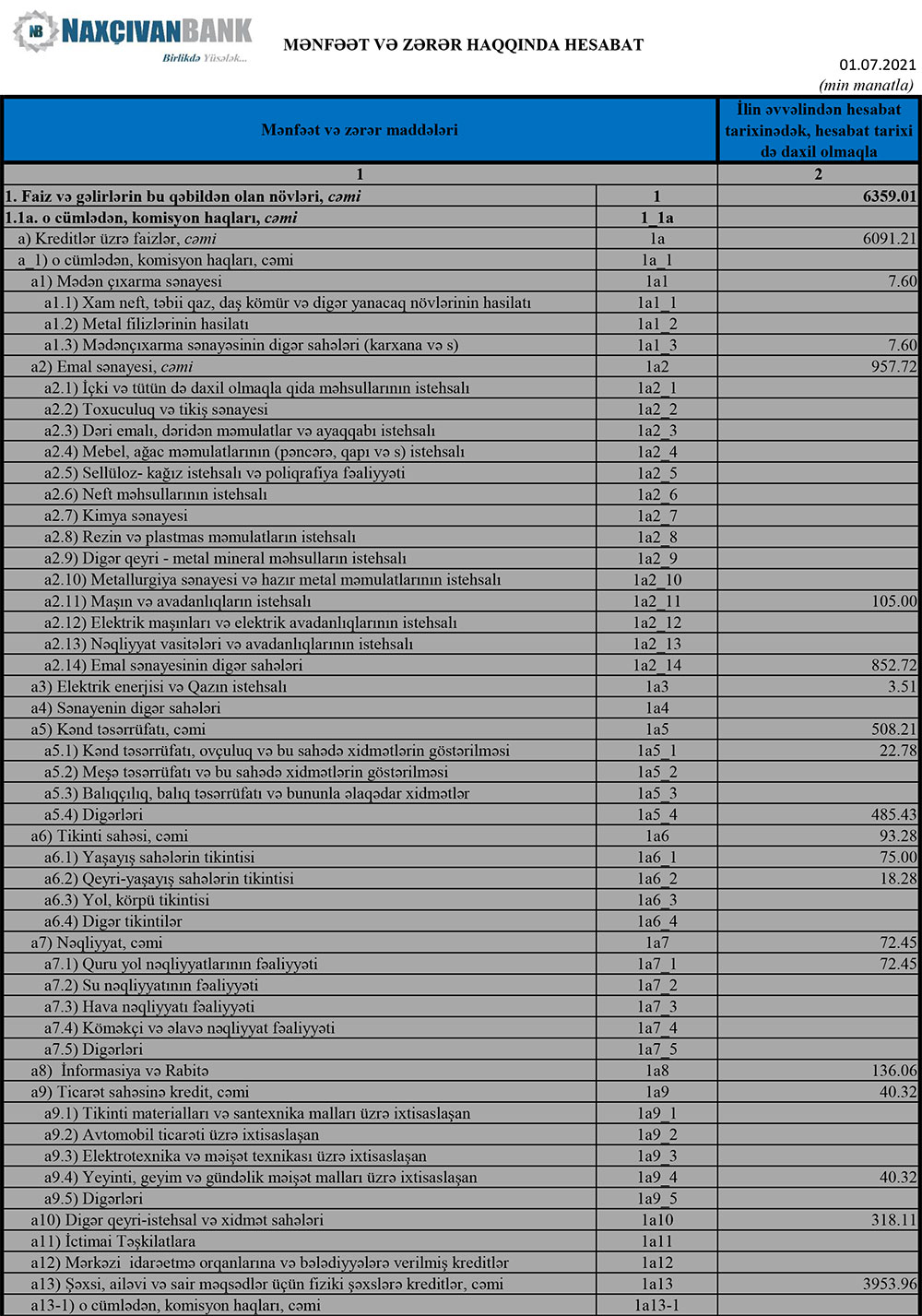"Naxçıvanbank" ASC 2021-ci ilin 1-ci yarısını (yanvar - iyun dövrünü) 3 milyon 684 min manat xalis mənfəət ilə başa vurub. Ötən ilin eyni dövrü ilə müqayisədə "Naxçıvanbank"ın xalis mənfəəti 1 milyon 105 min manat və ya 23% azalıb. "Naxçıvanbank" 2020-ci ilin 1-ci yarısını 4 milyon 790 min manat xalis mənfəət ilə bağlamışdı. Xalis mənfəətin azalması ehtiyata ayırmanın artması və bu il mənfəət vergisi ödənilməsilə əlaqədardır. Bankın yarımillik əməliyyat mənfəəti 5 milyon 430 min manatdan 5 milyon 514 min manata yüksəlib.