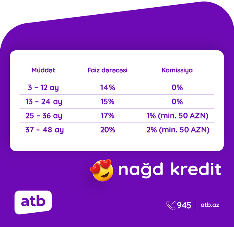 Qeyd edək ki, 24 ayadək verilən kreditlər üzrə komissiya nəzərdə tutulmamışdır.