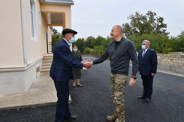 Azərbaycan Prezidenti İlham Əliyev Vətən müharibəsi zamanı Ermənistan silahlı qüvvələrinin "Smerç" raketləri ilə hücumu nəticəsində Tərtər şəhərinin sakini Sahib İsmayılovun dağılmış evinə baxıb və onun yerinə inşa edilən yeni evdə yaradılan şəraitlə tanış olub.