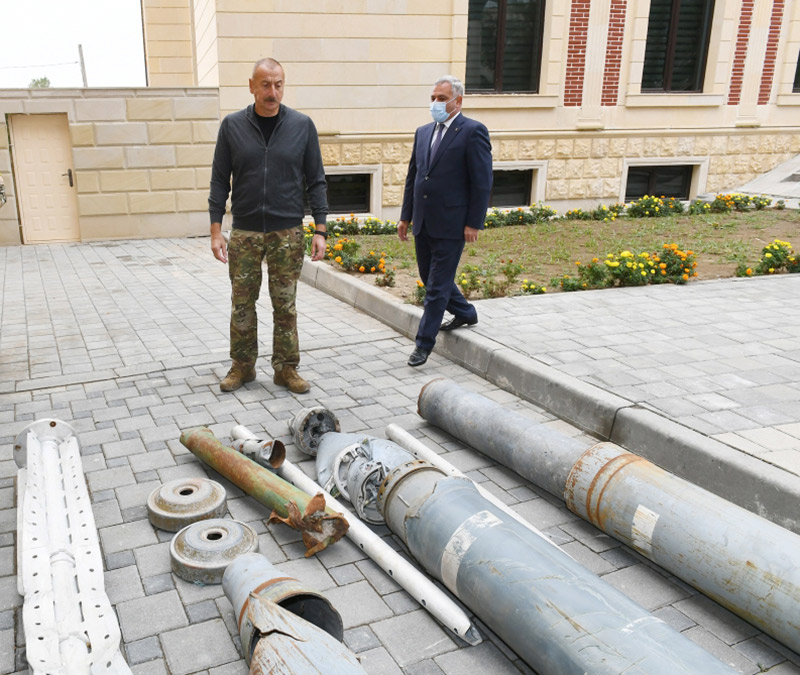 Prezident İlham Əliyev rayon mərkəzində Ermənistan silahlı birləşmələri tərəfindən Tərtər rayonuna müxtəlif tipli reaktiv yaylım atəşi sistemləri və artilleriya qurğularından atılmış mərmilərə baxıb.