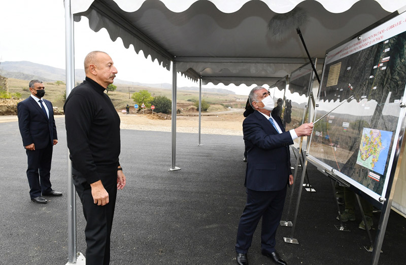 Marja xəbər verir ki, Prezident Hadrut qəsəbəsində yeni məscidin təməlini qoyub, Hadrut-Cəbrayıl-Şükürbəyli, Tuğ-Hadrut və Füzuli-Hadrut yollarında aparılan tikinti işləri ilə tanış olub, 35 kilovoltluq yeni “Hadrut” yarımstansiyasının təməlini qoyub.