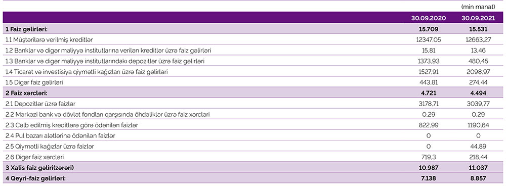 Cari ilin 9 ayında Bank 728,6 min manat həcmində xalis mənfəət əldə etmişdir ki, bu da keçən ilin eyni dövrünə nisbətən dəfələrlə çoxdur.