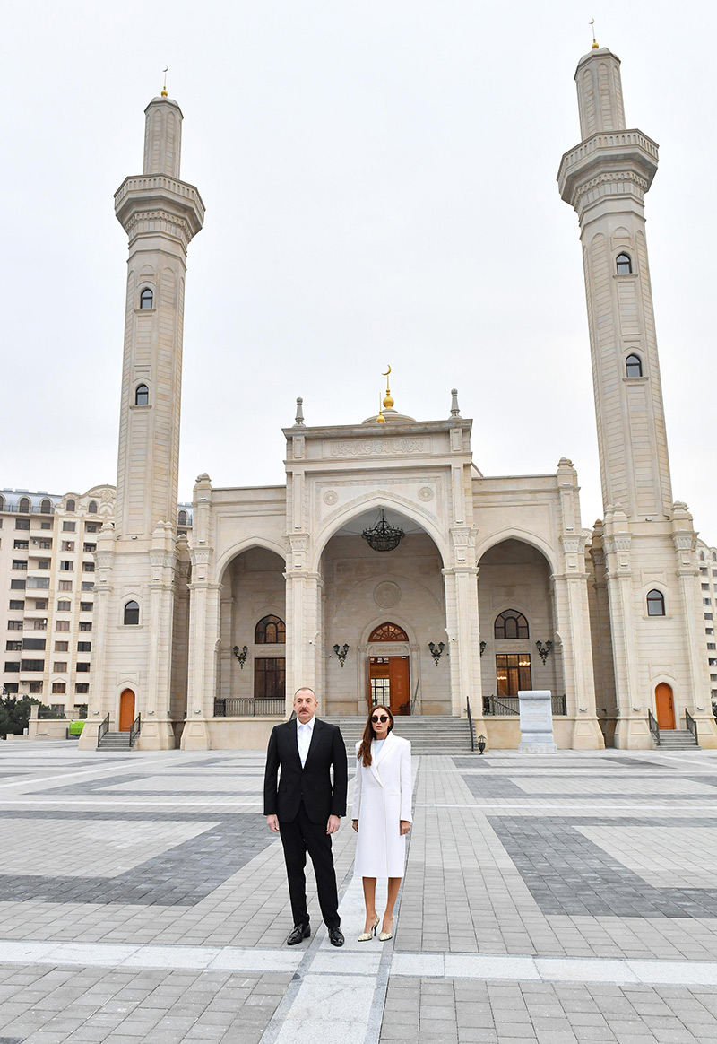 1800 nəfərin ibadət etməsi mümkün olacaqAzərbaycan Respublikasının Prezidenti İlham Əliyev və birinci xanım Mehriban Əliyeva Bakının Suraxanı rayonunun Yeni Günəşli qəsəbəsində “Xanım Fatimeyi Zəhra” məscidinin yeni binasında yaradılan şəraitlə tanış olublar.