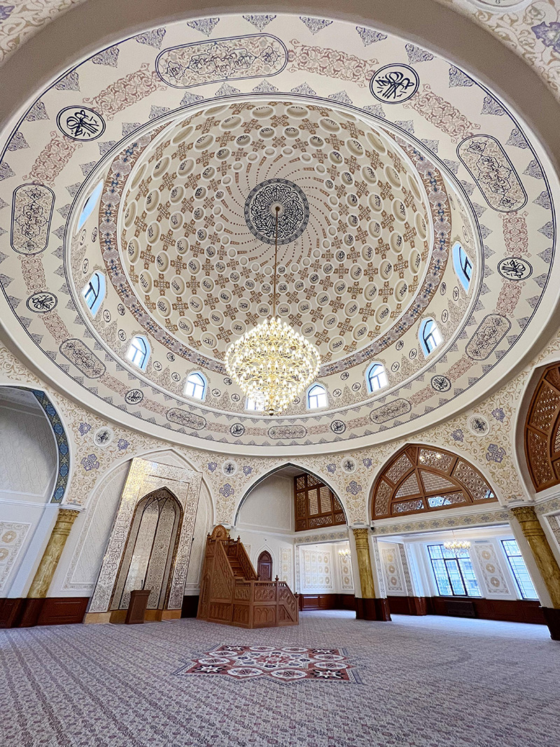 Məscid kompleksinin diametri 4 metr və hündürlüyü 42 metr olan iki minarə və hündürlüyü 25 metr olan günbəz bəzəyir.