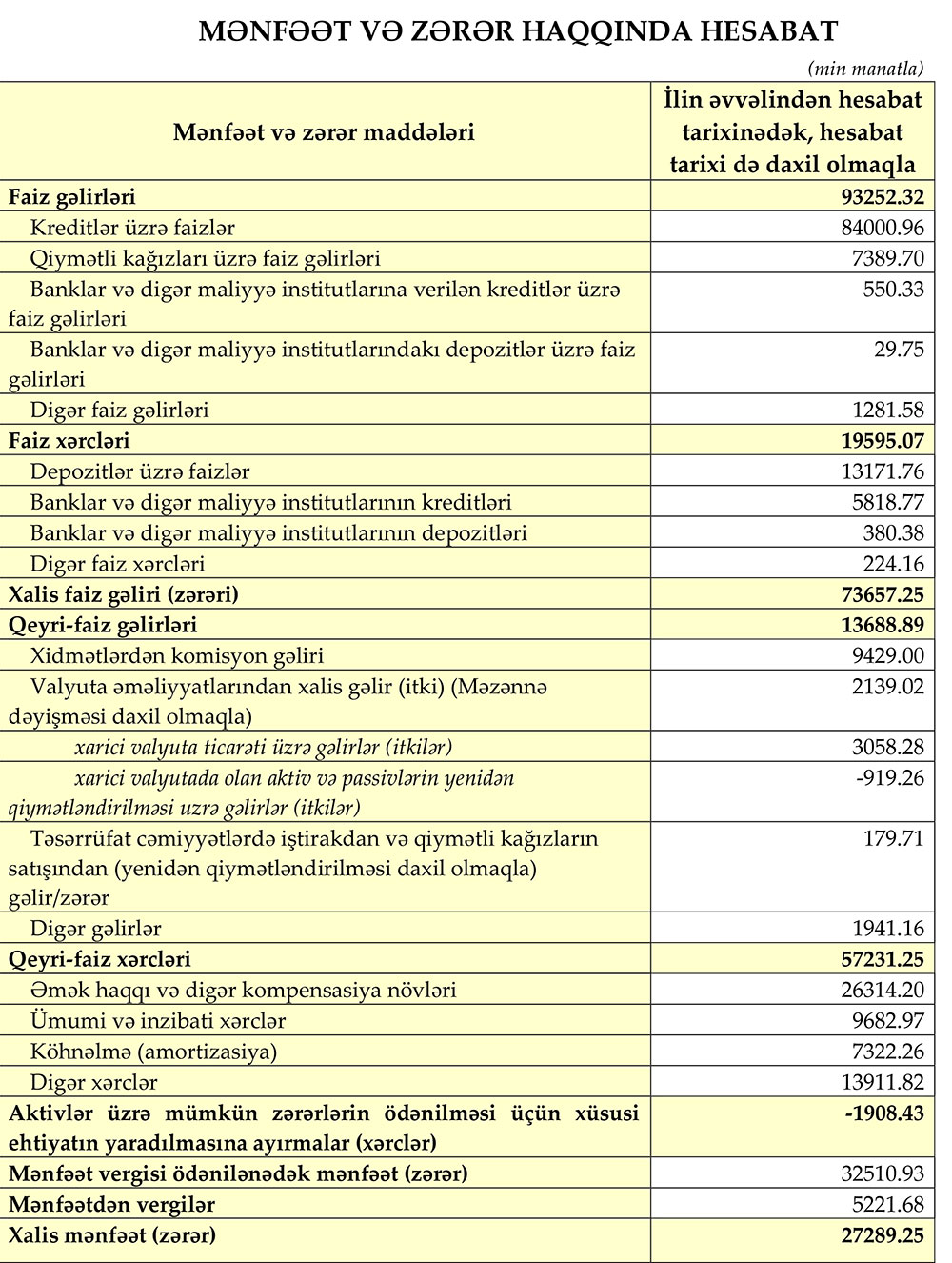 Azərbaycanın 3-cü böyük özəl bankı 27 milyon manatdan çox xalis mənfəət açıqladı