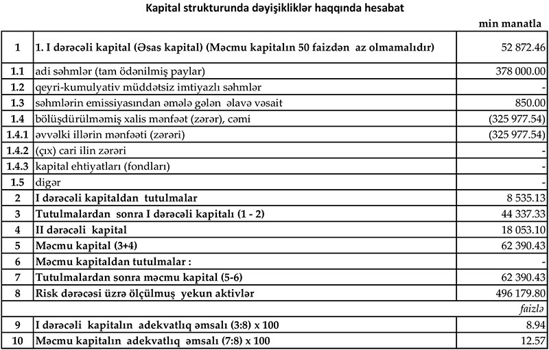 Xatırladaq ki, 2020-ci ildə “Yelo Bank” 2 milyon 446 min manat əməliyyat zərərilə bərabər ehtiyatlara 37 milyon 303 min manat ayırdığından həmən ili 39 milyon 748 min manat xalis zərər ilə bağlamışdı.