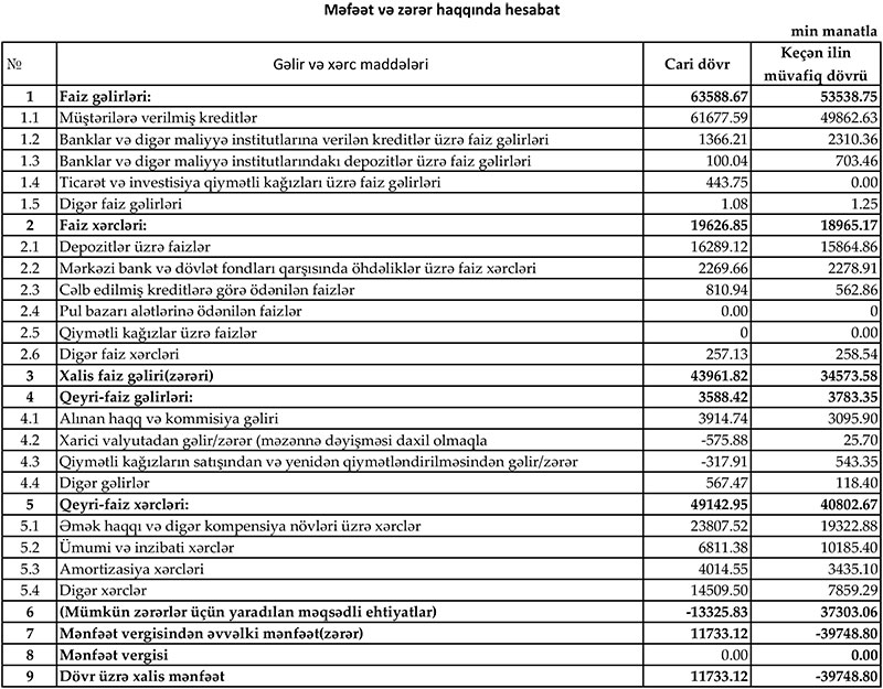 Bu bankın xərcləri gəlirlərindən çox olub - 1,6 MİLYON MANAT ZƏRƏR