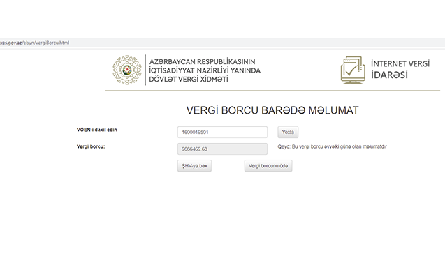 Belə ki, şirkətin 1600019501 nömrəli VÖEN-i üzrə sorğu verən zaman “Kaspi Yıldız”ın 9 666 469.63 AZN borcu olduğu üzə çıxır.