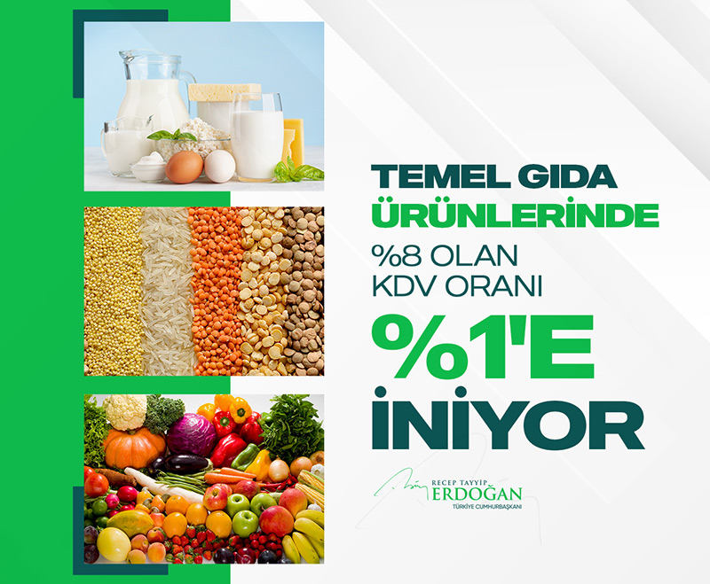 Prezident Rəcəb Tayyib Ərdoğan tədbirdə video əlaqə vasitəsi ilə çıxış edərək, əsas ərzaq məhsullarına əlavə dəyər vergisini (ƏDV) 8 faizdən 1 faizə endirdiklərini açıqlayıb.