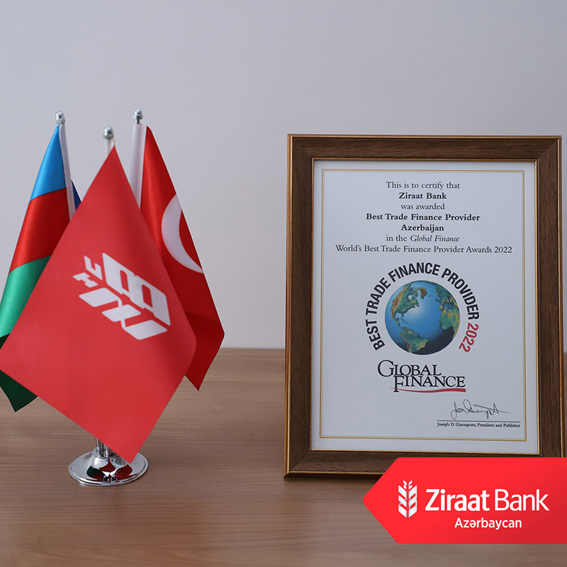 (®) Hər zaman real sektorun inkişafına böyük əhəmiyyət verən Ziraat Bank Azərbaycan xarici ticarət istiqamətində göstərdiyi xidmətə görə Beynəlxalq nəşr tərəfindən mükafatlandırılıb.