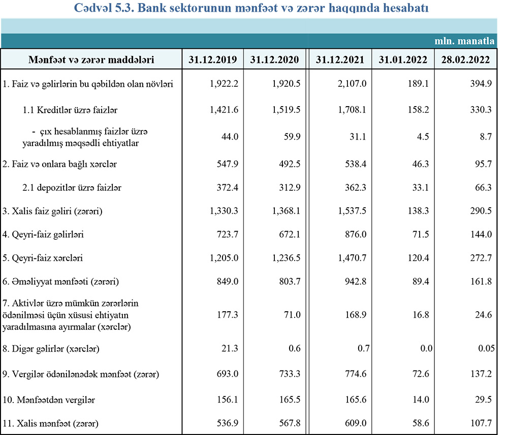 Azərbaycanın bank sektoru 2022-ci ilin yanvar-fevral dövrünü 107,7 milyon manat xalis mənfəət ilə başa vurub.